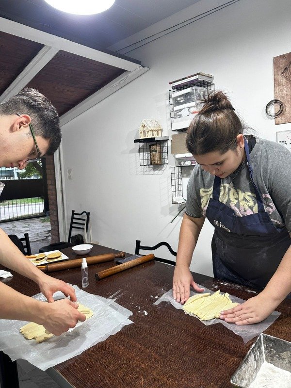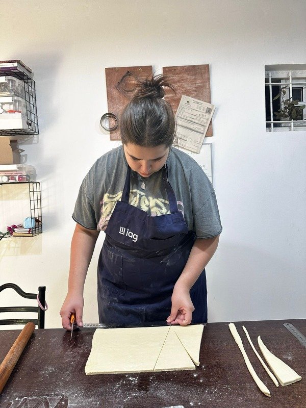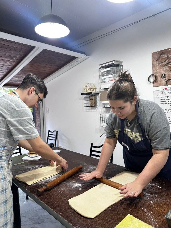En este curso cada persona va a elaborar su propia masa, laminar una masa , cortara una masa para formar sus propias piezas y como cierre de clase veremos puntos de fermentacion y horneado.